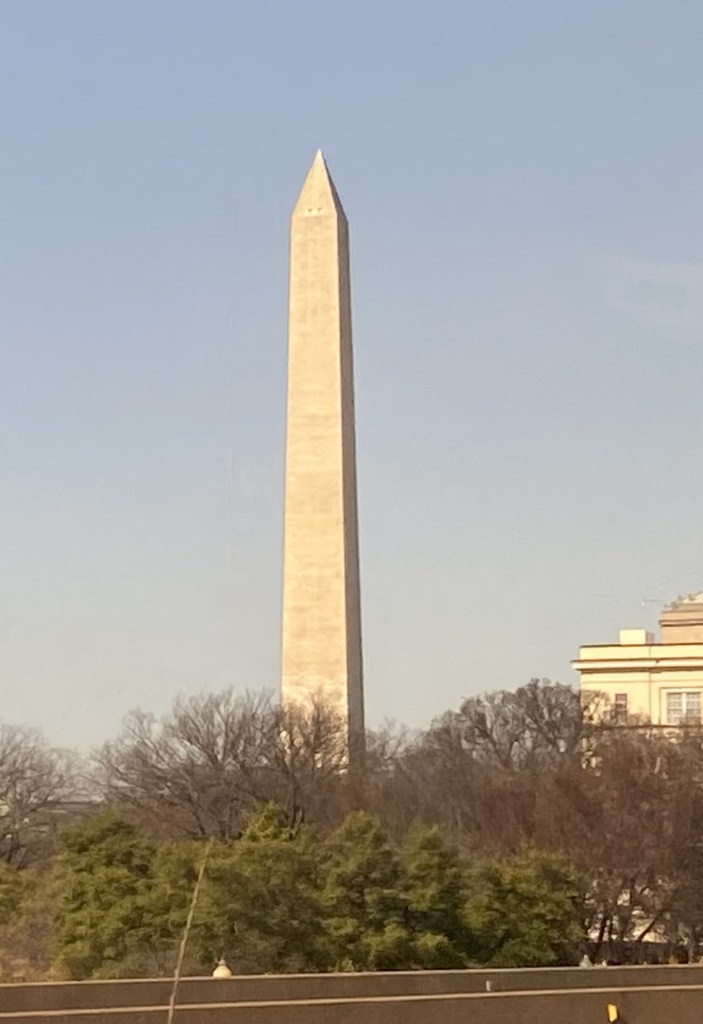 Dad put us back on the train Sunday morning and we bid Roanoke farewell. Riding in Business Class again, we came into Washington DC a few hours later. I was able to snap a picture of the Washington Monument from the train. Our friend, Jessy, met us at the station for a “drive-by” visit. Good to see her and catch up. We sat in the lounge and chatted until our next train.