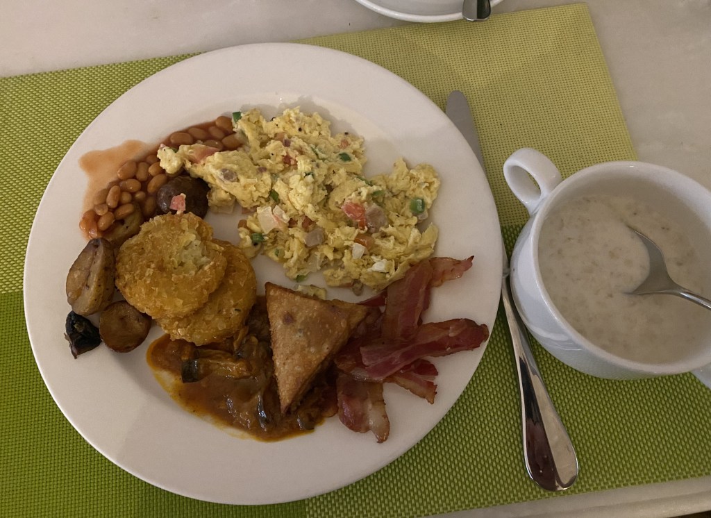 At 4:00am, Myra‘s alarm went off because she’s going on the balloon ride this morning. She showed me there was some food for me on the little table in the corner. So after she left, I munched some cold food, which was good. I tried calling Bernadette on WhatsApp, but the connection kept dropping so we just texted for a while.