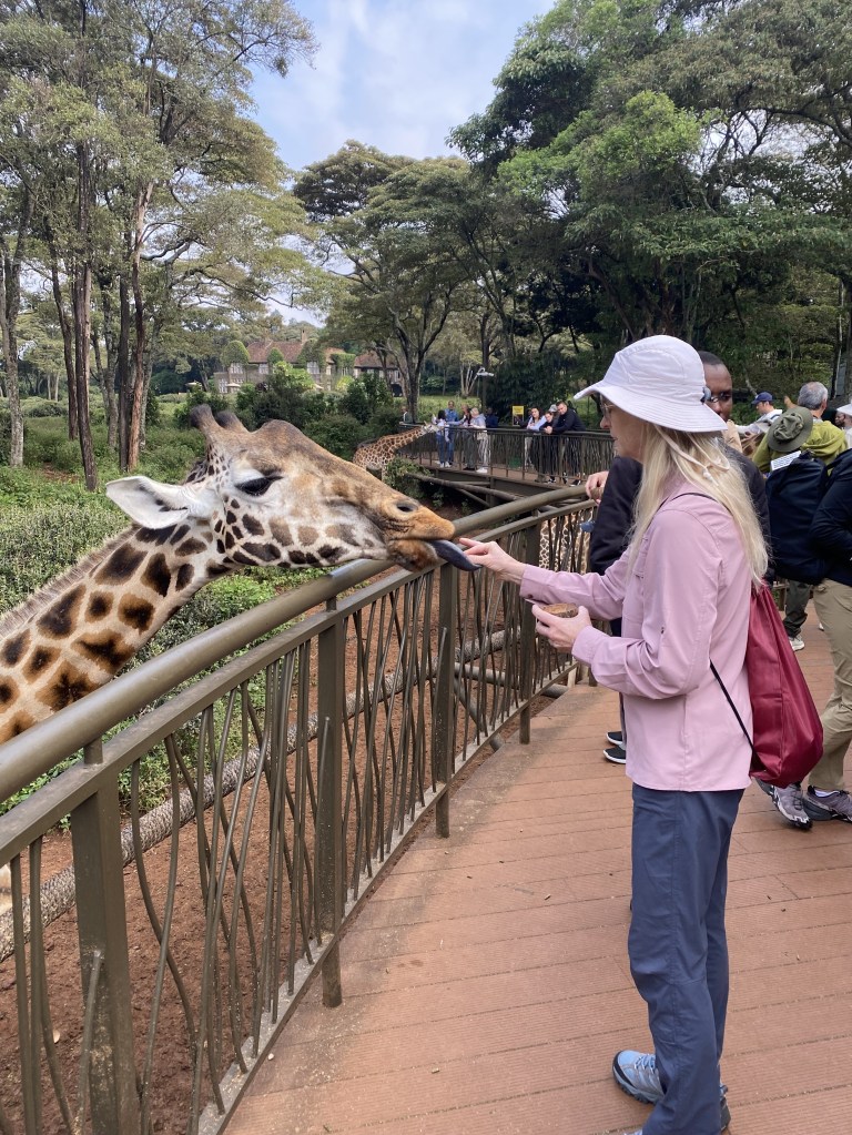 The giraffes ambled over to the walkway and stretched forward and stuck out their tongues. The guide told us don’t be afraid of giraffe saliva; it is a natural antibiotic. That may be true, but I still washed my hands afterwards.