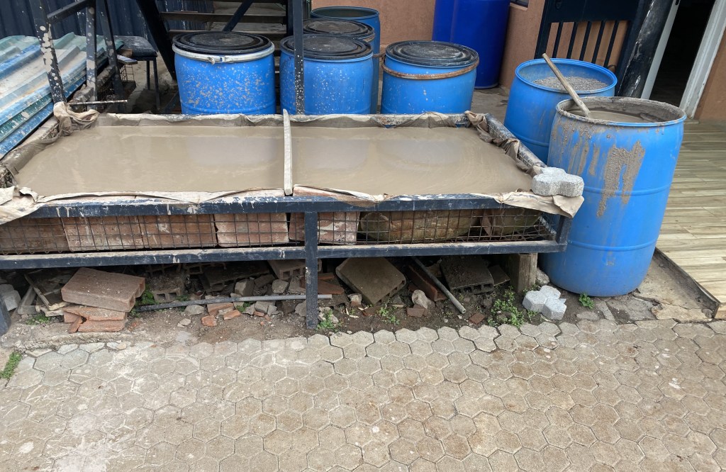 Our final point of interest for the day was a small “factory” called Kobe Tough. Here, women who are single, widowed, or divorced, who otherwise have no income, can work making clay beads and small figures. It was a courtyard surrounded by a handful of ramshackle buildings and one modern building that was the store where they sell what they make. A woman named Eunice guided us around each of the buildings, showing us the process, and introducing us to some of the workers.