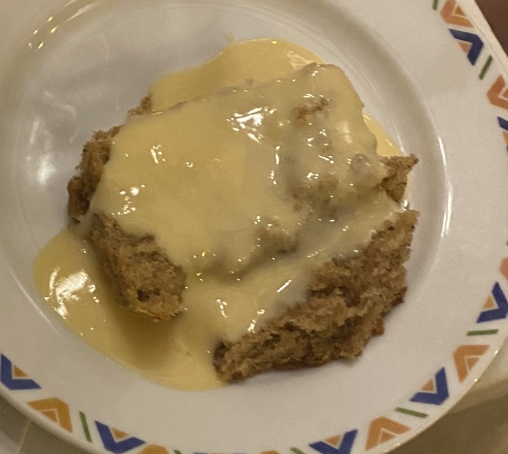 I took a nice hot shower and felt great after that. I went up to the lodge for breakfast. I was the only one in the dining room when I arrived. Their selection is a little more limited than the other places we’ve stayed. I got some eggs and potatoes and oatmeal. I went out on the balcony. The day is gorgeous. I did a video call with Bernadette, then came back to my room where I’m sitting on the deck with my crossword puzzle book and a cup of tea. Very peaceful.